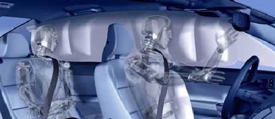 The system can also use an electro-mechanical deceleration sensor that mechanically closes at a certain force. At this point, an electronic contact is closed, and the generated signal is then sent to the control unit. When both the electronic sensor with piezoelectric crystal and the safety switch send a signal to the control unit, it activates the airbags in the interior.