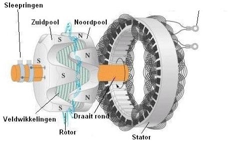 The rotor is not a permanent magnet but an electromagnet. It becomes magnetic by passing a current through it, generating AC. The generated voltage can be controlled by increasing or decreasing the rotor current, which is the task of the voltage regulator.
