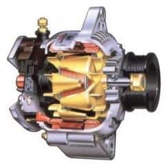 Alternators generate alternating current (AC), but the vehicle’s electrical system operates on direct current (DC), as does the battery. The AC is converted to DC using the diodes in the diode bridge. The voltage generated depends on: