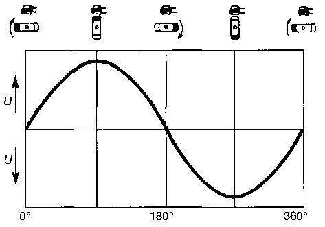 As the alternator charges, the rotor’s north and south poles move relative to the stator, generating AC in the stator. The generated voltage in one rotation of the magnet in the conductor takes the form of a sinusoidal wave, as shown in the image.