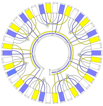 The image below shows three different colors: black, red, and blue, representing separate phases. As seen, there is considerable space between the black phases. By connecting the other phases, this space is bridged, allowing a steady current flow.