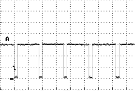 The signal in Chart 2 was taken with many consumers on. Here, the rotor is considerably more excited to reach the 14.4 volt charging current. The duty cycle here is about 50%.
