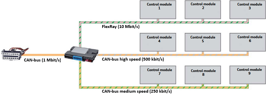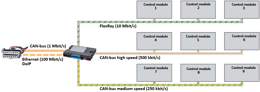 Networks such as CAN and LIN bus have been used in vehicles for a long time and remain suitable communication tools as long as the amount of information being sent is limited. However, for data-rich functions, these networks fall short in available bandwidth. For this reason, automotive Ethernet is being used more and more in modern vehicle communication. Alongside Ethernet, these vehicles still use networks such as CAN, LIN bus, and FlexRay.