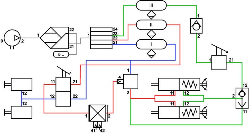- circuit 3 (green) is the brake circuit of the auxiliary brake or parking brake;