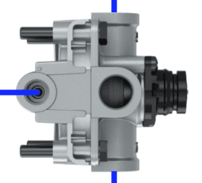 In older trucks the check valve was often a separate component, but in more modern trucks it is often built into another component, such as the four-circuit protection valve or the parking brake valve.