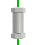 The check valve prevents air from flowing back to the tank. In the flow direction (from 1 to 2) the ball is pushed off its seat by the air pressure, but in the opposite direction (from 2 to 1) the ball blocks the air flow.