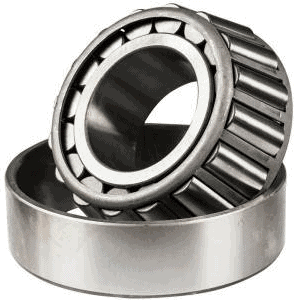 Tapered roller bearings have an inner and outer ring with a cage containing tapered rollers in between. Tapered roller bearings are used to absorb axial loads. The advantage of the tapered rollers is that they have a larger surface area, allowing them to handle larger forces. This type of bearing is used, for example, in the transmission as a pilot bearing or as a wheel bearing in cars equipped with drum brakes.