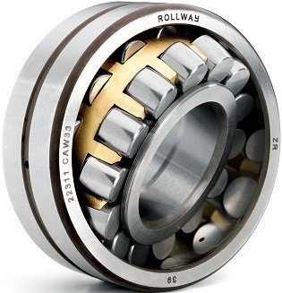 The spherical roller bearing is suitable for taking very heavy radial loads and accommodating shaft misalignment. The barrel-shaped rollers align themselves in the outer raceway. The spherical roller bearing also features a lubrication groove and several lubrication holes to press grease into the bearing during maintenance.