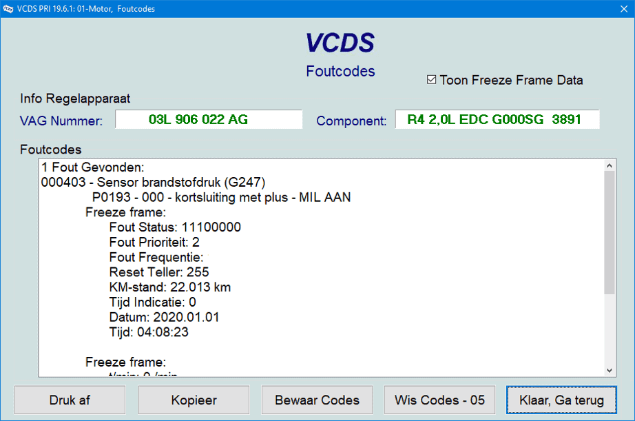 When a customer complains and/or warning lights are on, we first start by reading the car. The following fault is active: