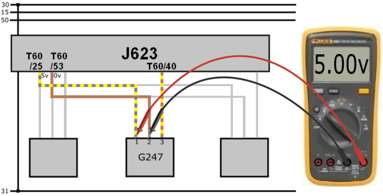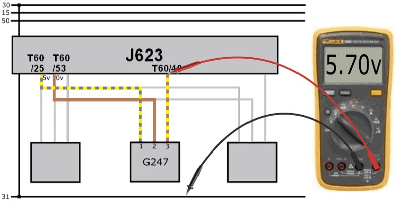 - We measure a voltage of 5.7 volts on pin 40 of the ECU due to the internal circuitry;