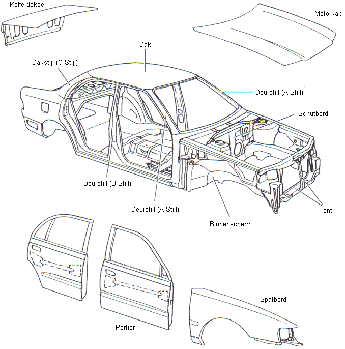Non-supporting parts include the doors, hood, trunk lid, fenders, and side windows. These parts are often bolted to the body and don’t contribute to body rigidity.