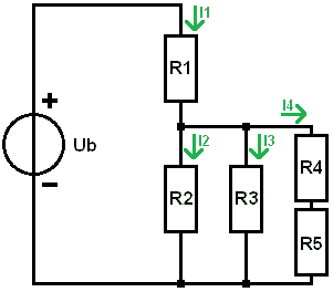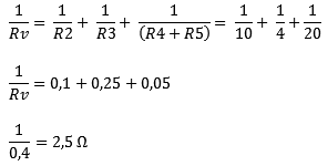 In the parallel circuit, there is a series circuit, so for simplicity, we sum R4 and R5. We could consider this as a third RV in the circuit. However, to avoid confusion with accents, we will omit this.
