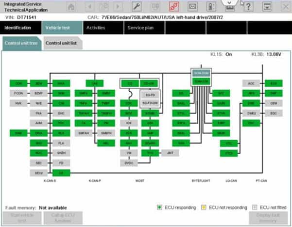 Modern cars often contain dozens of separate control units. The image shows a screenshot from a BMW diagnostic computer.
