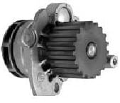 In the image below, the coolant pump is shown as number 4. It is driven by the serpentine belt. This technique is often used when the engine is driven by a timing chain. Some manufacturers choose to use this technique even with a timing belt. The advantage of this is that when the coolant pump leaks or seizes, it will not damage the timing belt.