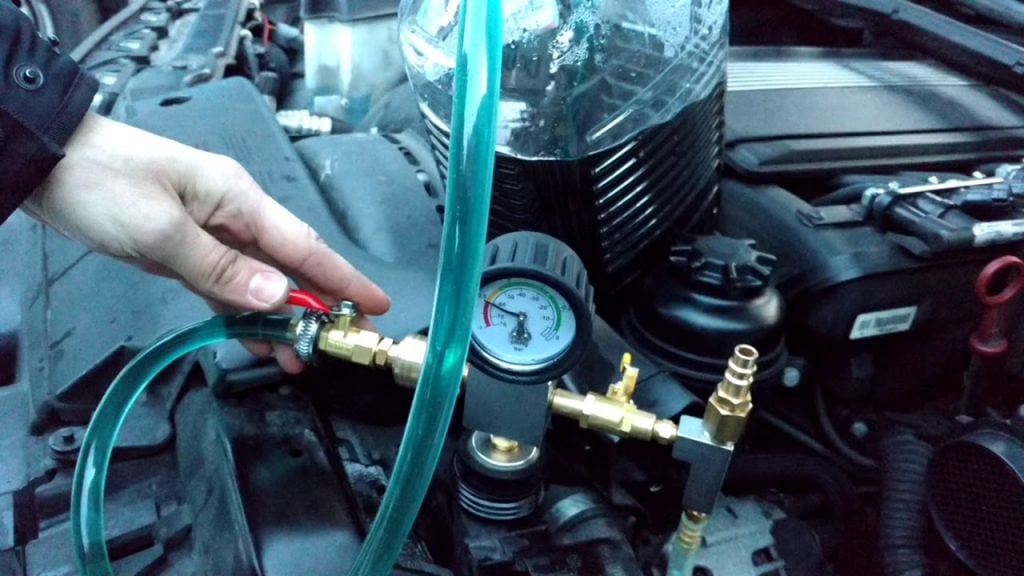 The best way to fill the cooling system is to first vacuum it. Using a cap with valves and compressed air, the entire cooling system can be vacuumed. By then opening the valve of the coolant container, the new coolant is drawn into the system. In this case, there’s no need to bleed.