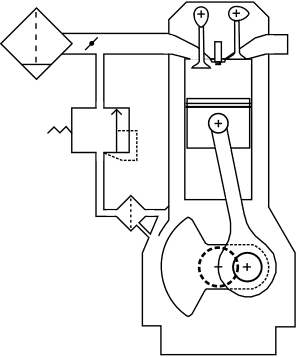 If crankcase pressure increases and excessive crankcase vapors occur, for example, due to excessive wear on piston rings, the pressure relief valve opens to prevent crankcase pressure from rising too high.