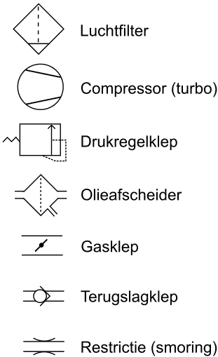 - Increased crankcase pressure: This is not a problem with the crankcase ventilation itself, but it can be observed via the breather. When there is excessive air blowing through the crankcase ventilation, it could be due to one or more damaged (compression) piston rings or cylinder wall. The mixture leaks past the piston rings into the crankcase (blow-by) during compression strokes. To confirm that the piston rings are the cause, a compression test or cylinder leak test should be conducted. In engines experiencing this, engine oil will degrade and foul more quickly due to fuel and combustion gases.