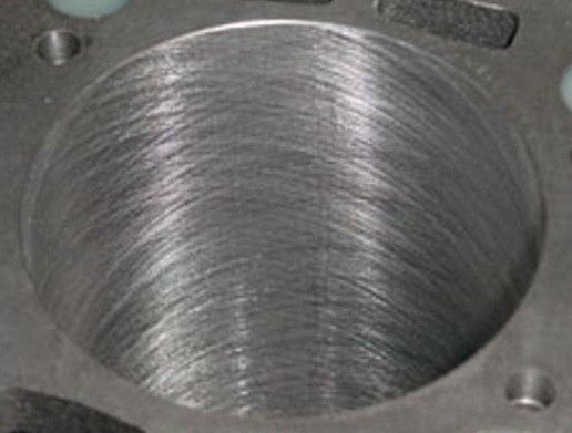 Honing the cylinder must be done very carefully. Too few honing grooves results in higher oil consumption, and too many causes damage to the protective layer in the cylinder wall.