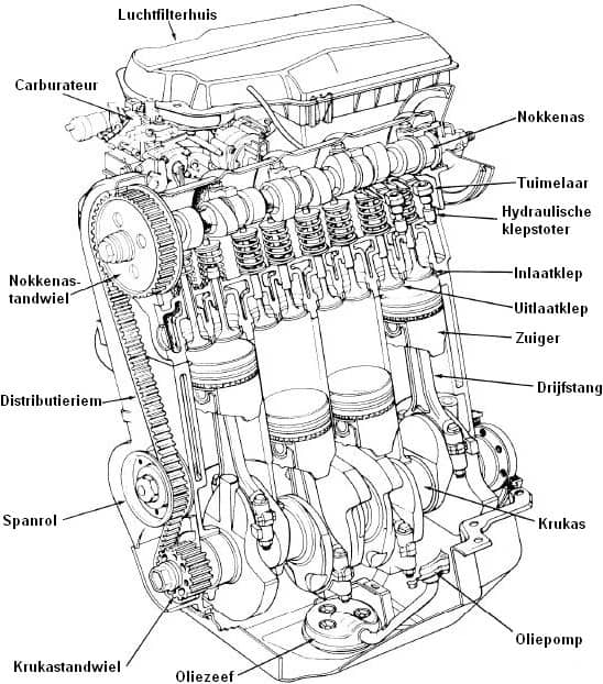 The cylinders are arranged horizontally opposite each other at an angle of 180 degrees. The advantages of this flat engine are that the car’s centre of gravity is immediately much lower. The engine will also suffer less from vibrations, because the piston vibrations cancel each other out. The engine is therefore much better balanced and therefore does not need separate balance shafts. Boxer engines are used in both passenger cars and motorcycles. Subaru is known for using boxer engines, as are the Citroën 2CV and the old VW Beetle.