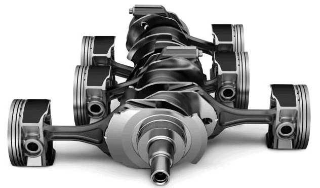 The cylinders can also be arranged in a V-shape at 60 or 90 degrees: this is called a V-engine (for example a V6 or V8). If the cylinders are placed horizontally to the left and right of the crankshaft, it is a boxer engine.