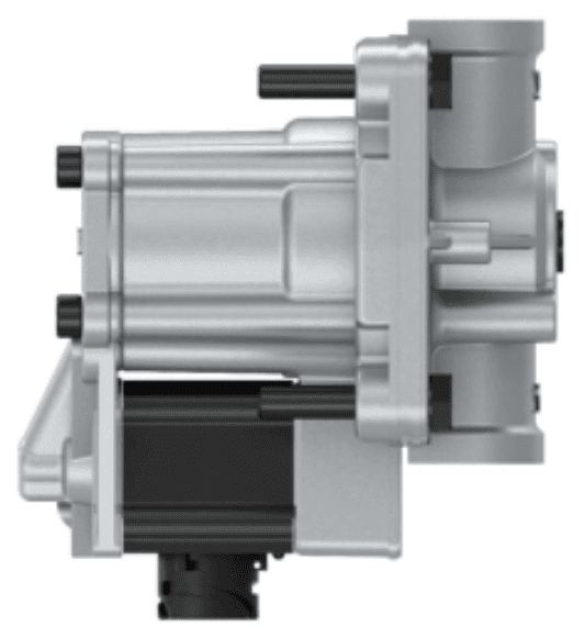 Just as with the front axle modulator, the desired brake deceleration is sent by the EBS computer to the rear axle modulator to send the desired brake pressure to the diaphragm cylinders. The ABS valves are integrated in the rear axle modulator.