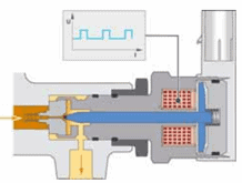 When the ECU switches the valve to ground, current will flow through the coil. In that case, the valve is energized and opens. If the ECU interrupts the ground, a spring in the fuel metering valve ensures that it closes again. By doing this very rapidly and varying the period of time that the valve opens and closes, we can speak of PWM control.