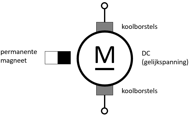 The brushless DC (direct current) motor is a synchronous motor. The electrical control has replaced the brushes. This type of electric motor is very similar to the synchronous AC motor with permanent magnets, as used in the drivetrain of electric vehicles. The main difference between the two motors is the control: the AC motor is controlled with a modulated sinusoidal AC voltage, and the DC motor with a block voltage.