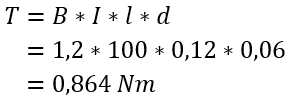 To fill in actual values into the formula T = B * I * l * d, we can make assumptions based on typical values for shunt and series motors in vehicles. A series motor initially has a higher current (I) and thereby a higher magnetic flux (B) than a parallel motor. When other data (length of the copper wire and diameter of the armature) are equal to each other, we can compare the generated torque between the two motors.
