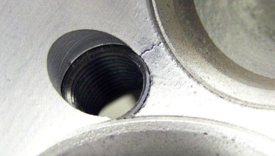 The following image shows a crack between the valve seat and the spark plug hole.