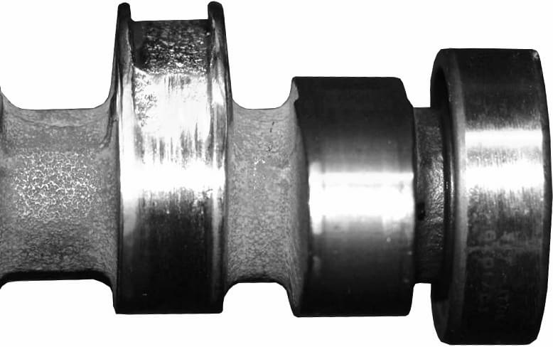 If there is a lack of oil, or if the bearing caps are swapped, camshaft damage can occur as visible in the following image. Deep scratches have formed because material has been removed.