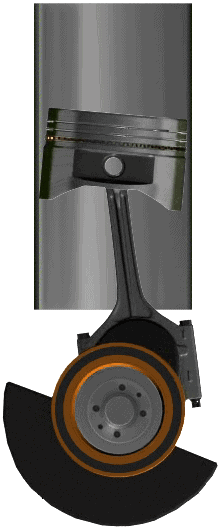 - The connecting rod is perpendicular above the crank journal. The force on the upper main bearing (Fh) is as high as the force on the piston (Fz) as a result of the combustion pressure (p). The upper connecting-rod bearing is also loaded with an equally large force.