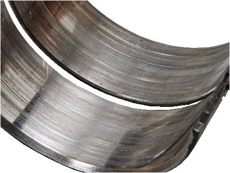 When installing connecting-rod bearings, close attention must be paid to the fact that bearings must absolutely not be swapped with each other. The bearings have worn in to their journals. Swapping them will always cause increased wear on the bearing and possibly also on the journal. When installing new bearings, one must use plastigage to check the clearance between the bearing and the journal. Bearings that are too thick make it more difficult to form an oil film between the two, which causes friction.