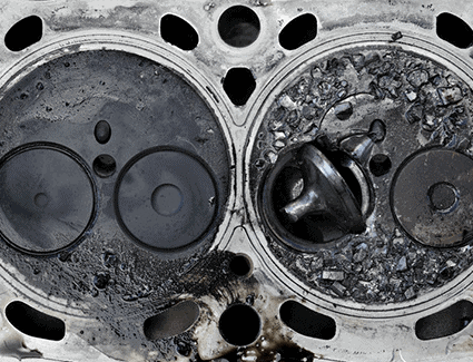 - burnt valves and valve seats;