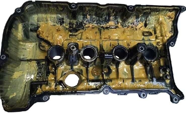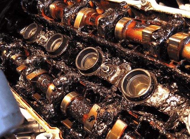 This sludge is very bad for the engine. It is a black, sticky, hard layer that deposits on the internal parts of the engine. In the photo below, black sludge is visible.