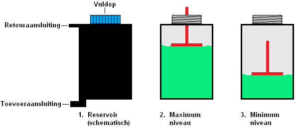The disadvantage of this tank is that the cap must be removed to check the fluid level. This is not possible with a hot engine. If the engine is too hot, the fluid will flow out of the tank because the boiling point is lowered and the coolant will expand and may start to boil. If this is not the case, but a hissing sound is audible, then the level will increase due to the pressure drop. At that moment, it seems as if the fluid level is at maximum, but if, for example, an hour is waited for the engine to cool down, the fluid level may only be halfway up. This can give a distorted view of the fluid level. It is therefore always important to check the level with a cold engine.