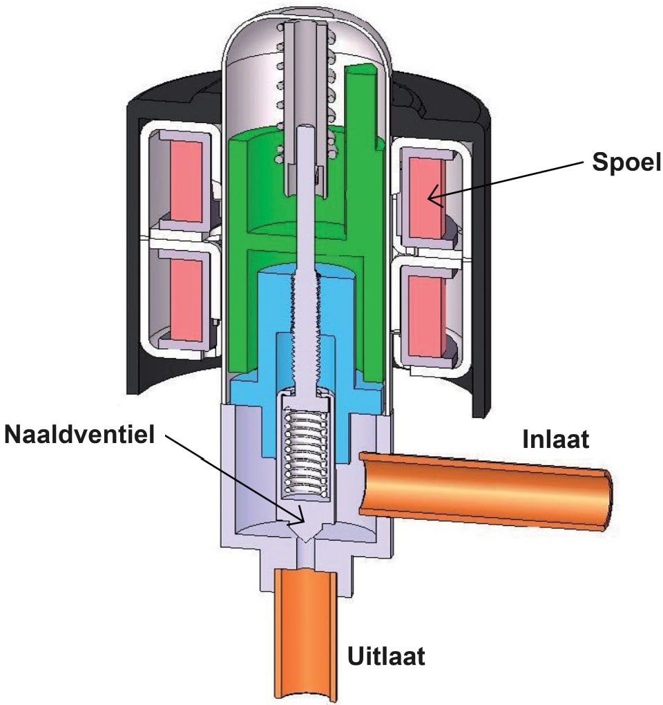 Using the climate control ECU, the Electronically controlled Expansion Valve (abbreviated as EEV) can be actuated. A stepper motor can be used for this. This stepper motor allows the needle to increase or decrease the opening in small steps. Depending on the desired temperature in the interior, the ECU can very quickly control the capacity by using the electrically driven A/C compressor and the expansion valve.
