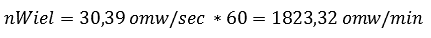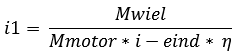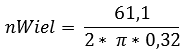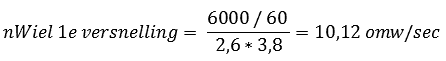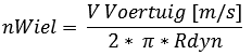 (nWheel has just been calculated for the first gear, and Rdyn was already known; this equals 0.32m. The formula can then be filled in: