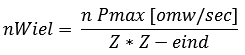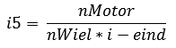 The reduction of the 5th gear can also be determined in a similar manner. The 5th gear must be determined based on the maximum engine speed, as it would be unfortunate if the engine still has enough power to accelerate further while the maximum engine speed (and thus the car’s top speed) has been reached. Likewise, the wheel speed (nWheel) at maximum vehicle speed is important. It must be calculated first: