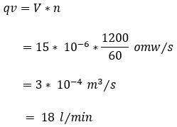 - pump displacement (V) = 15 cm³ / rev;