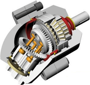 This type of hydraulic pump can achieve pressures of up to 300 bar. The pump has a uniform output and produces very little noise.