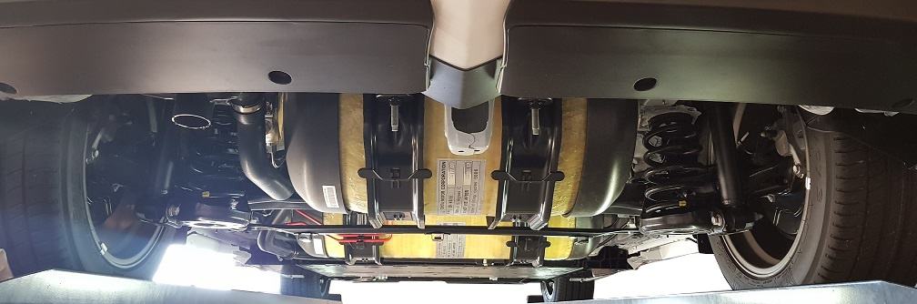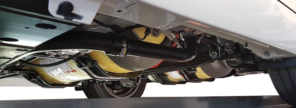 Below is a repeat view of how the hydrogen tanks are mounted beneath the car. The plastic tube is the drainage of water that is formed during the conversion in the fuel cell.