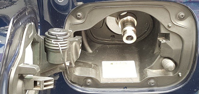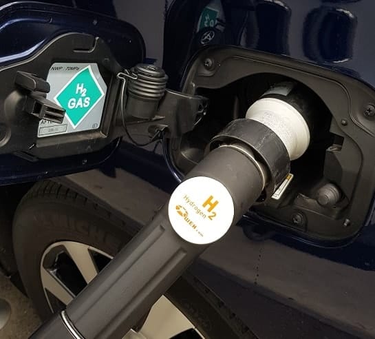 The refueling connection on the car is located behind the usual fuel cap. The nozzle is connected to this refueling connection. After connecting the nozzle, it will lock. The car’s storage tank will be filled with gaseous hydrogen under a pressure of 700 bar.
