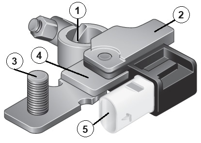 The battery sensor is integrated into the ground cable, which is attached between the negative terminal of the battery and a ground point on the body or chassis. On the battery sensor, there is a connector with two or more wires. One wire leads directly to the positive terminal of the battery, and a second wire is for communication.