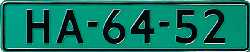 - Dealer license plate (green background with black characters) used for