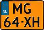 Since September 1, 2005, mopeds and scooters have their own license plate. The license plate comes in a horizontal layout of 14.5 x 12.5 cm and a vertical layout of 10 x 17.5 cm.
