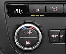 This section gives an example of controlling the seat heating via LIN-bus. The A/C control panel features a button for the seat heater. Under the button, there are three LEDs indicating the setting level of the seat heating. Pressing the button multiple times will change the level of the seat heater (setting 1 is the lowest and setting 3 is the highest). In the image below, three LEDs are lit to indicate the highest seat heater setting. In this section, a diagram is used to explain how the communication via LIN-bus works to operate the LEDs when the button is pressed.
