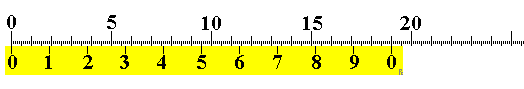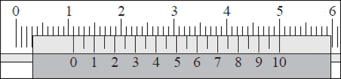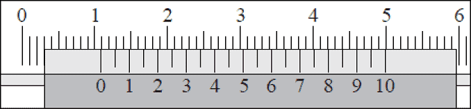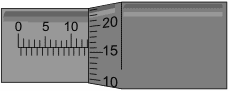 The measurement in the image follows the same principle. In this case, the 0 of the vernier is halfway between 15 and 16 mm on the ruler. You can already deduce that the decimal number will be around 4, 5, or 6. The lines of the ruler and vernier align at 5; therefore, 15+0.5 = 15.5 mm is now measured.