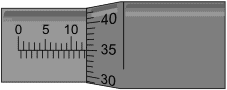 In this image, the line at the bottom of the scale again is closest to the measuring drum. Therefore, according to the horizontal scale, it is at least 12.5 mm. Then we add the indicated value from the measuring drum, which is 0.35 mm. Finally, we sum 12.5 and 0.35.