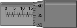 The horizontal line shows the whole millimeters. In this case, that is 13 mm. The line of 16 mm on the measuring drum aligns with the horizontal line on the reading sleeve. The measurement indicated by this image is (13 + 0.16) = 13.16 mm.