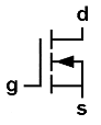 The left connection is called the gate (g), the top is the drain (d), and the bottom is the source (s).